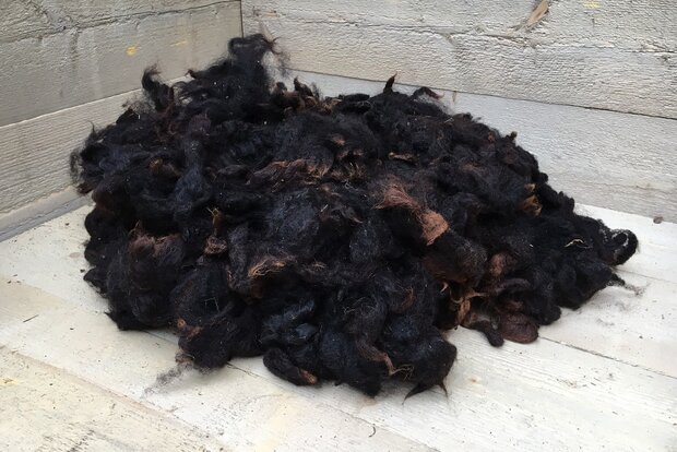 500 gram gesorteerde zachte lamswol van jeugdige Zwartblessen in de tint (overwegend) bruinzwart, welke voor de eerste maal geschoren zijn. De wol van het uit Nederland afkomstige schapenras Zwartbles is prima spinbaar. De vilteigenschappen zijn redelijk. Bruinzwarte Zwartbleswol is aan de scheerzijde zeer donker (bijna zwart). Onder invloed van de zon zijn de vezels aan de lokzijde variërend roodbruin tot donkerbruin. Zogenaamde 'eerstescheers' lamswol van een Zwartbles met een fijnvezelige structuur is extra zacht van kwaliteit. Puur, onbewerkt en ongewassen; rechtstreeks van het schaap. De losse wol (geen vacht) is afkomstig van echte, raszuivere Zwartbles Schapen en is handzaam verpakt in een duurzame netzak. Eventuele grove mest- en strooiseldelen zijn verwijderd, net als de meeste onbruikbare korte vezels. Echte schapenwol is puur natuur en elk schaap is uniek. De omschreven vachtkleur en kwaliteit betreft altijd een indicatie. Wol is nooit volledig egaal, de wol op elk lichaamsdeel heeft een eigen unieke structuur, vezellengte en tint.
